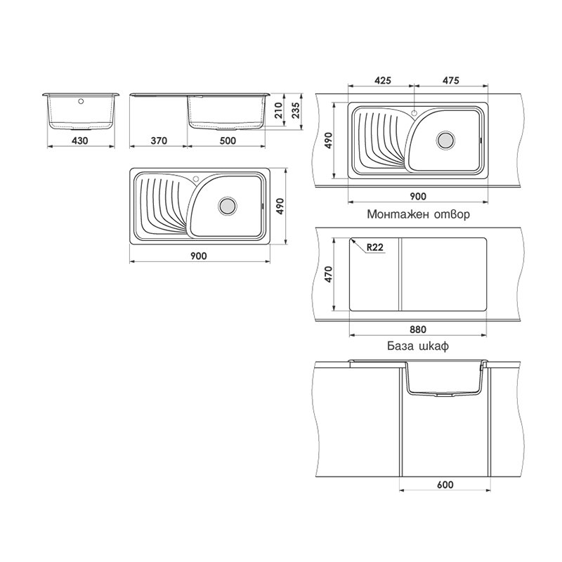 Built-in kitchen sink of the FAT brand. Made of polymer marble with dimensions of 90 x 49 cm with a left top. The sink is in the color of cappuccino granite. The set includes a high-quality Italian sink trap with a size of Ф90 mm.