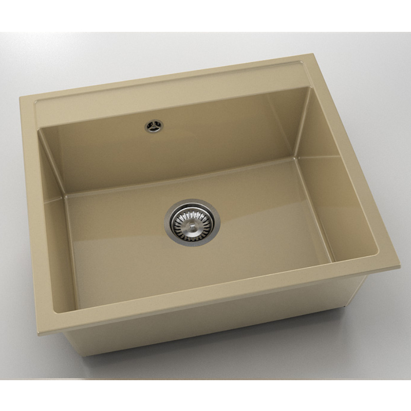 Einzelnes Einbauspülbecken der Marke FAT. Hergestellt aus Polymermarmor mit den Gesamtmaßen 51 x 60 cm in der Farbe Cappuccino-Granit. Im Set enthalten ist ein hochwertiger italienischer Spülbeckensiphon mit einer Größe von φ90 mm.
