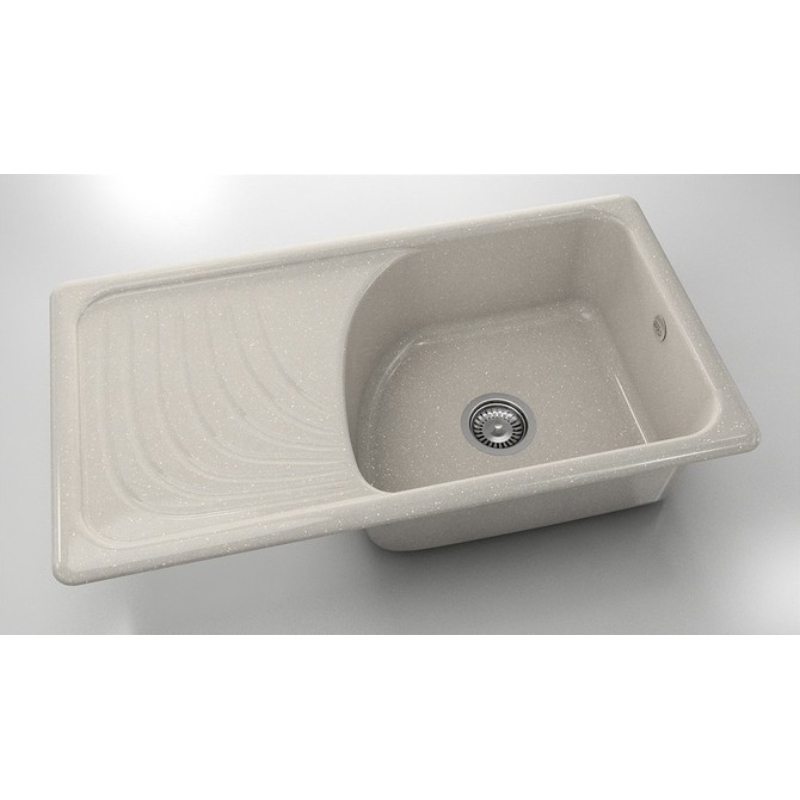 Diese Küchenspüle mit Einzelbecken und linker Arbeitsplatte ist für aktive Haushalte konzipiert und sowohl funktional als auch optisch ansprechend. Mit den Gesamtmaßen von 90 x 49 cm, einem tiefen Becken (21 cm) und einer Abtropffläche auf der linken Seite ist das Modell eine ausgezeichnete Wahl für alle, die Wert auf Komfort bei der Küchenarbeit legen.