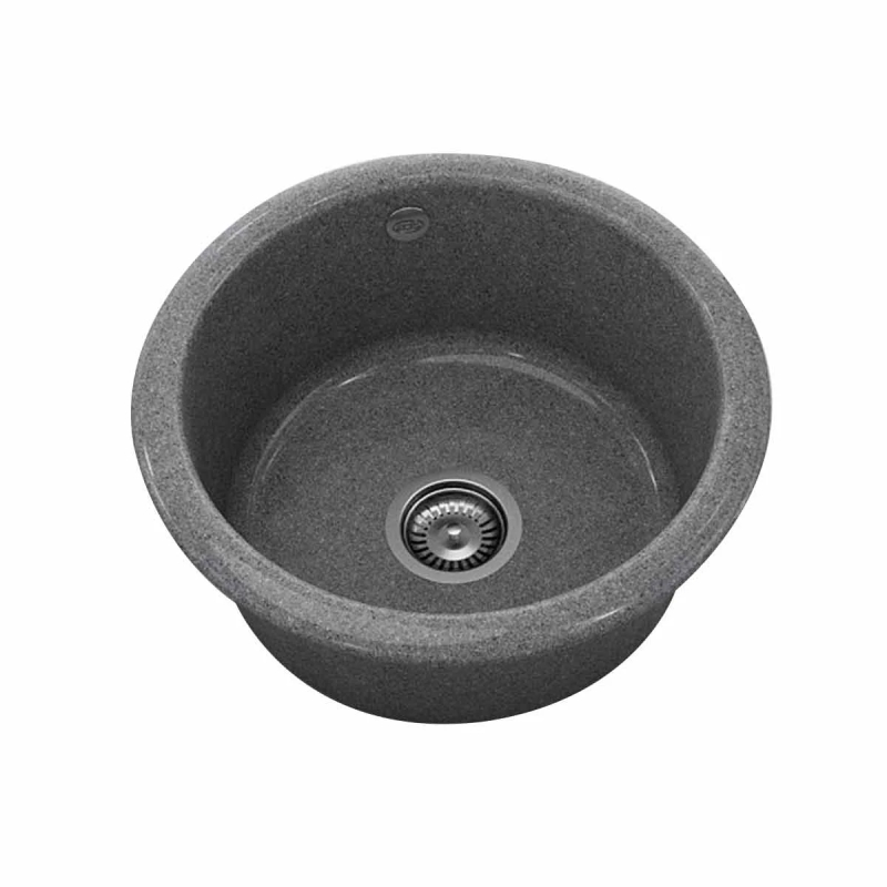 FAT runde Einbauspüle aus Granitixit mit einem Durchmesser von Ø 49 cm. Das Set enthält einen hochwertigen italienischen Siphon mit einem Durchmesser von Ø 90 mm.