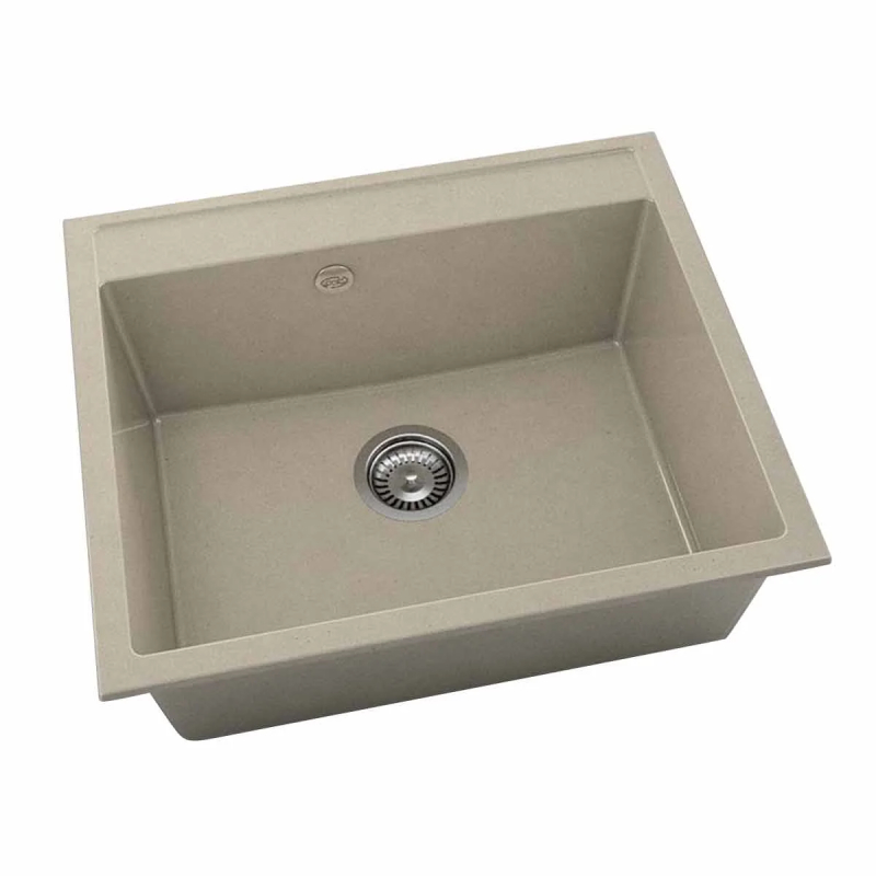 Einzelnes Einbauspülbecken FAT aus Polymermarmor mit den Abmessungen 51 x 60 cm. Das Set enthält einen hochwertigen italienischen Siphon mit den Abmessungen Ф90 mm.