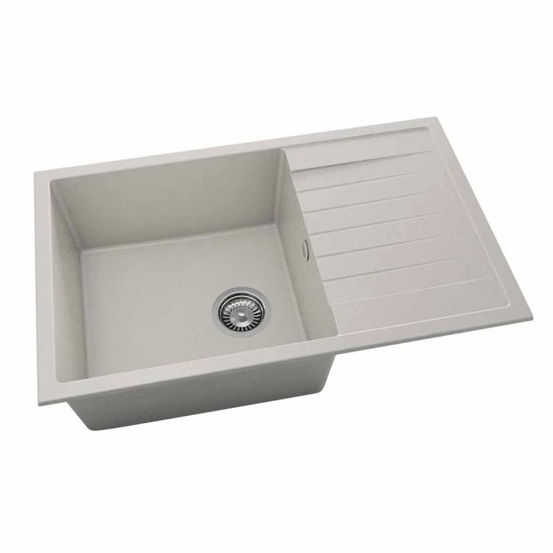 FAT Einbauspüle aus Polymermarmor, Größe 80 x 49 cm, mit der Möglichkeit, eine linke oder rechte Arbeitsplatte auszuwählen. Das Set enthält einen hochwertigen italienischen Siphon mit einer Größe von 90 mm.