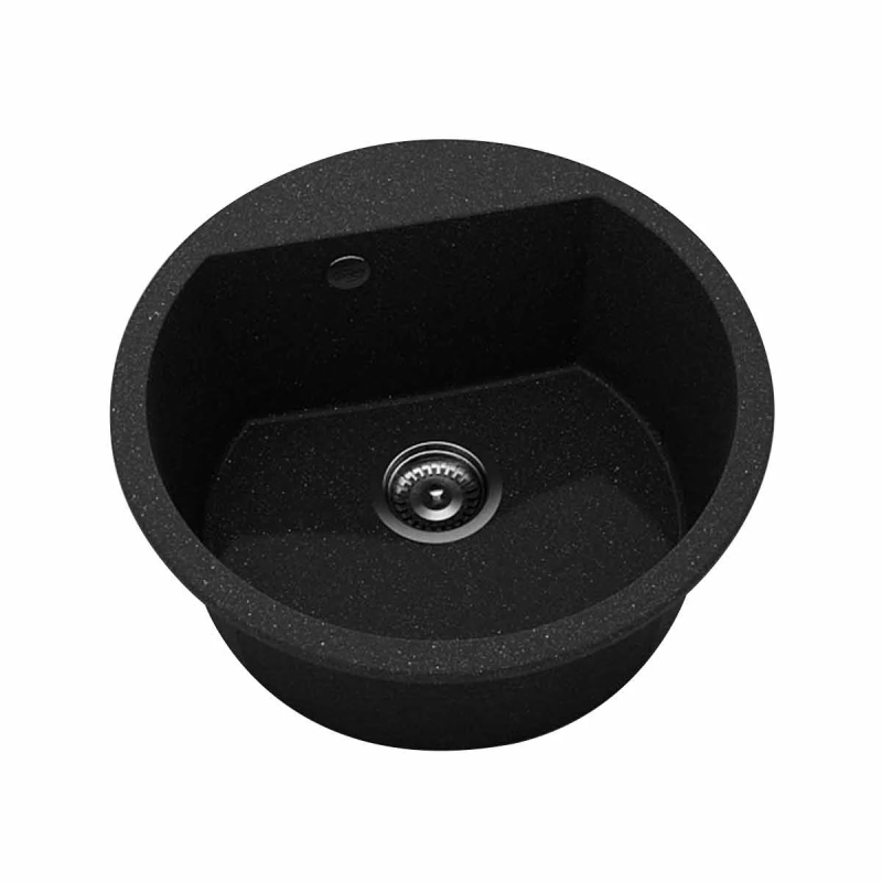 Eine runde Küchenspüle mit Rand der Marke FAT – zum Einbau. Aus Polymermarmor mit einem Durchmesser von 51 cm. Das Set enthält einen hochwertigen italienischen Siphon mit einer Größe von 90 mm.