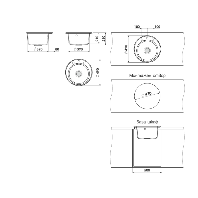 Die Spüle ist für den Einbau in eine Standard-Arbeitsplatte konzipiert und passt perfekt in Schränke mit einer Mindestbreite von 50 cm. Die runde Form ist besonders praktisch für Küchen mit begrenztem Platzangebot sowie für den Einbau auf einer Kücheninsel oder als zweite Spüle.