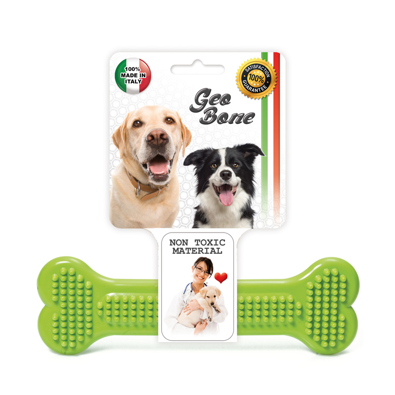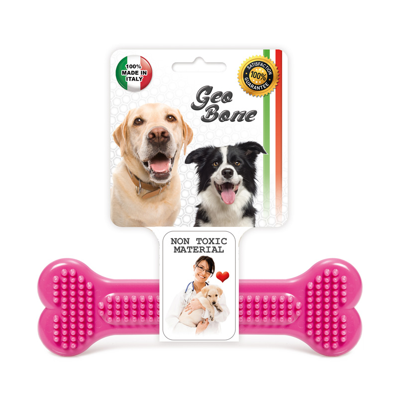Geo Bone rubber toy dog toy. Origin: GEORPLAST, Italy. Made of high quality rubber, which makes it extremely durable. Suitable for puppies of small breeds.