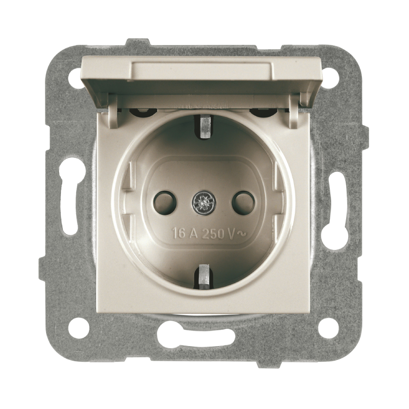 Single electrical socket from the Karre Plus series of the PANASONIC brand. With schuko socket /protective contact/. It consists only of a mechanism+cover and can be combined with frames in different colors of the same series. There is also a protective cover. Designed for concealed installation by installation with a mounting depth of 30 mm. Suitable for homes, offices, shops. Rated current: 16A.