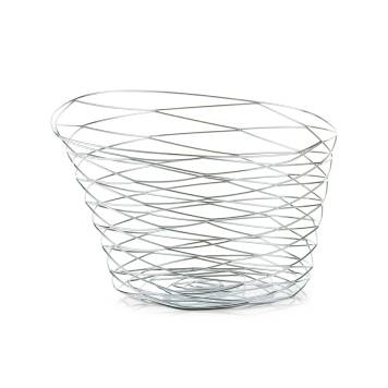 Fruit bowl. It is made of metal with a chrome coating that protects against corrosion. The fruit bowl has a diameter of F27 cm and a height of 19 cm.