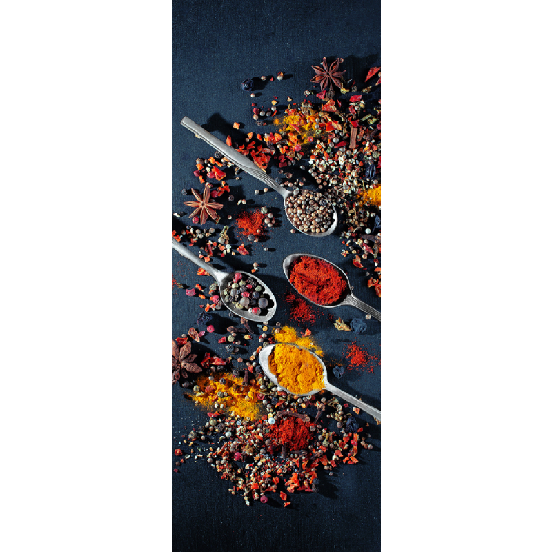 Glass picture for wall Spoons with spices of the STYLER brand. The picture is made using special technology for printing on glass. Glass print printing guarantees a good aesthetic appearance, realistic colors with high photographic quality and resistance to weathering. This type of paintings are ideal for those who are always looking for something different and beautiful, not afraid to experiment in interior design.