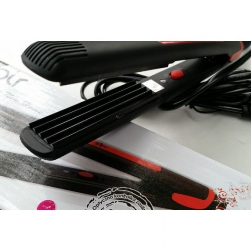 The maximum temperature that the hair straightener can reach is 200°C. The press has a clean and stylish design. It has a comfortable handle that provides comfort during work. Aluminum attachments ensure even heat distribution for maximum effect and hair volume. Thanks to the attachments, the hairstyle acquires a unique and charming shine and look.