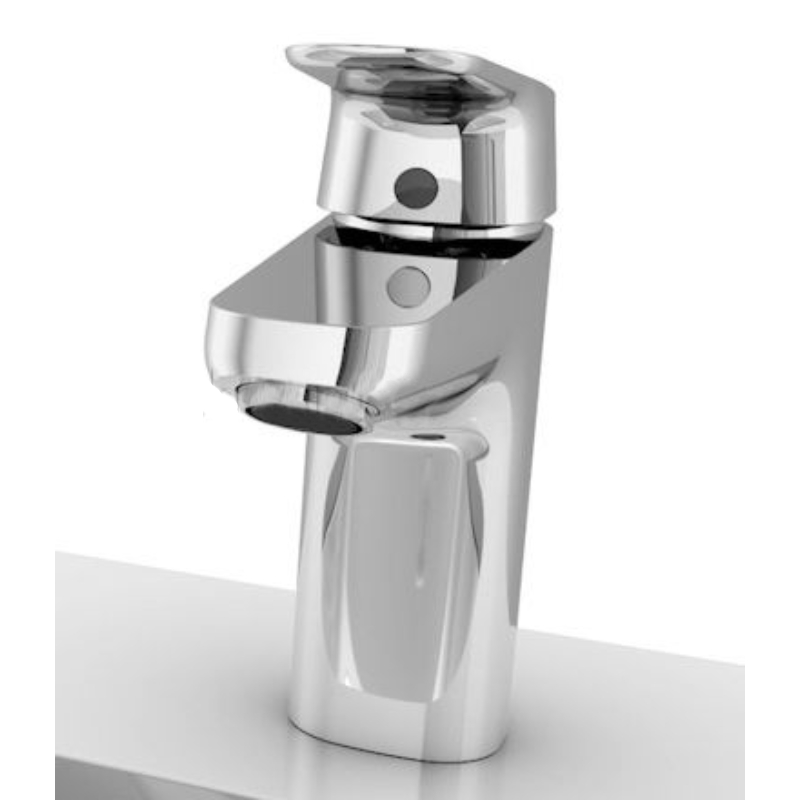 It is characterized by a hot water limiter and a Perlator aerator with a Water Saving function, which reduces the flow rate to 5 l/min. The model features a metal drain and a metal handle, which has indicators for hot and cold water. Available with flexible G3/8"connections.