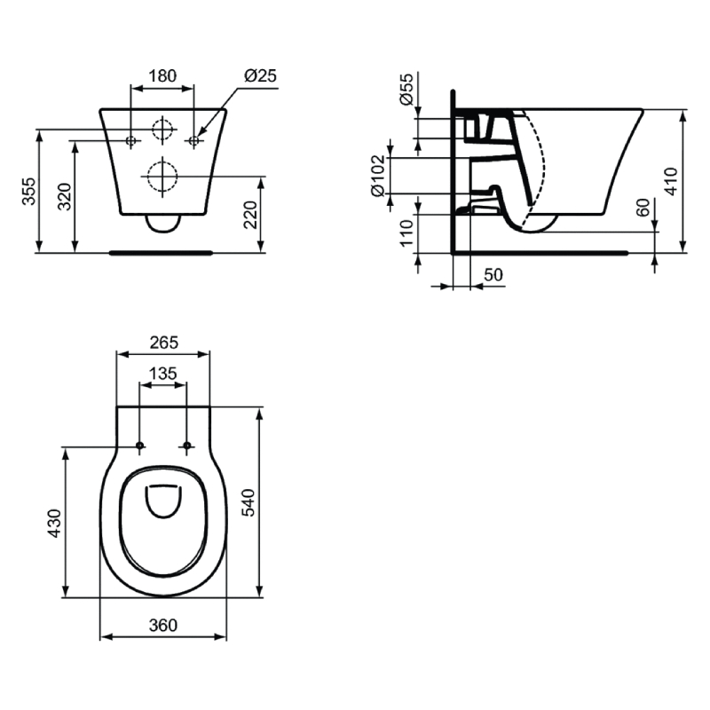 Suspended toilet bowl Connect Air - AquaBlade of the brand IDEAL STANDARD. The bowl features the revolutionary AquaBlade flushing technology - the most significant invention since the cistern in the 19th century. This patented technology is presented with an extremely high level of washing with little water consumption. She is cleaner, quieter and smarter.