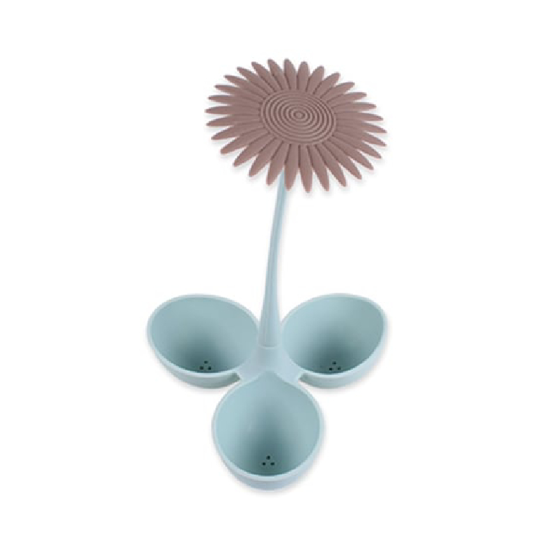 Der Silikongriff bietet einen angenehmen und sicheren Halt und das flexible Material beschädigt Töpfe und Geschirr nicht. Der in Braun oder Blau erhältliche Ständer vereint modernes Design mit hervorragender Funktionalität.
