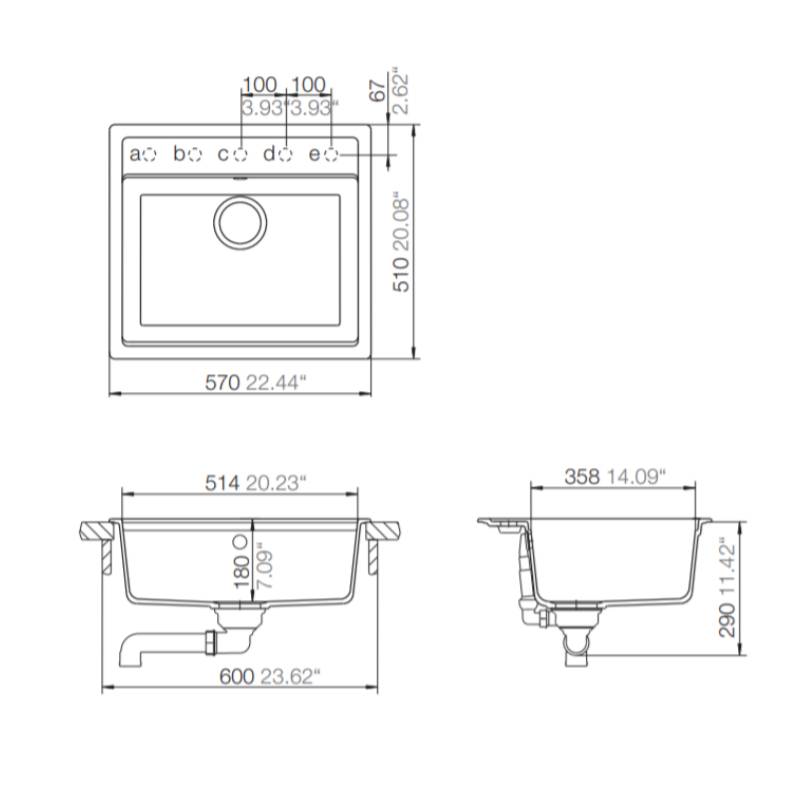 - Beckengröße: 51,4 x 35,8 x 18 cm