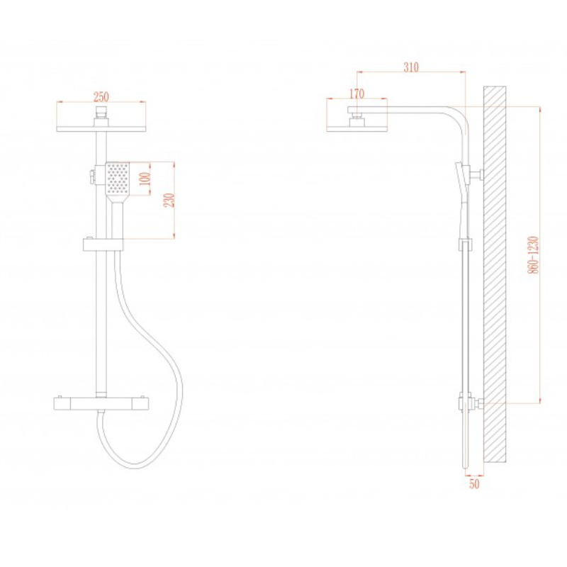 The height of the pipe suspension can be adjusted from 86 to 123 cm. The shower head has a large size for maximum comfort in the bathroom - 17 x 25 cm. The mobile hand shower also features a large head - 6.7 x 10 cm, and the total length of the hand shower shower is 24.5 cm. It has 1 water jet function. The hose for powering the shower handset is 150 cm long.
