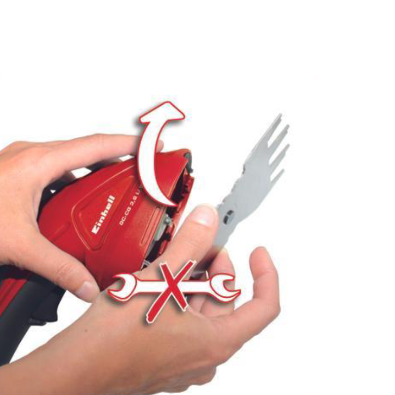 The GC-CG 3.6 Li WT Cordless Grass and Shrub Shear is a practical and compact tool that makes the job of edging grass, shrubs and undergrowth easier. The safety switch on the handle can be conveniently operated with one hand and prevents the tool from being switched on accidentally. The high-quality, durable blades of the GC-CG 3.6 Li WT achieve good cutting results and can be changed in a few simple steps without the use of additional tools.