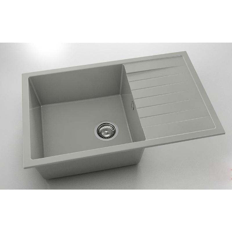 Einbauküchenspüle der Marke FAT. Hergestellt aus Polymermarmor mit Gesamtabmessungen von 80 x 49 cm in Edelstahlfarbe. Mit linker oder rechter Tischplatte bestellbar. Die spezielle Struktur des Materials reduziert das Geräusch des in die Wanne fallenden Wassers. Es zeichnet sich durch Beständigkeit gegenüber UV-Strahlen aus, da die Farben auch bei längerer Sonneneinstrahlung erhalten bleiben. Die Spülbeckenabdeckung weist eine hohe Beständigkeit gegenüber aggressiven Reinigungsmitteln aus Haushaltschemikalien auf, was die Bildung von Flecken und Ablagerungen verhindert und eine einfache und schnelle Reinigung gewährleistet.