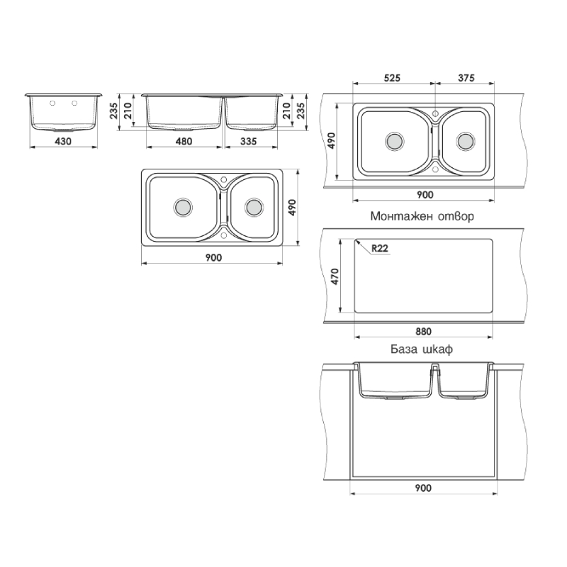 - Montageart: auf der Arbeitsplatte (für den Einbau)