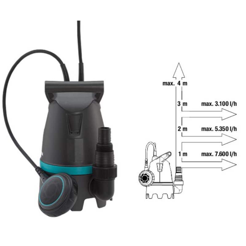 Tauchwasserpumpe 250 W, 8800 l/h, 6/4 m, 25 mm, 1 1/2" GARDENA.