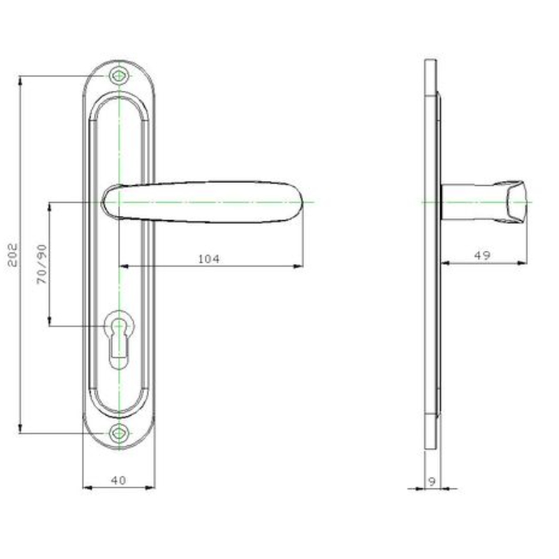 Vollflächiger Türgriff – 90 mm Lochabstand, geeignet für Metall- und Holztüren. Er vereint Stabilität, Funktionalität und klares Design. Mit viel Liebe zum Detail gefertigt, ist er die ideale Wahl für Innen- und Außenbereiche.