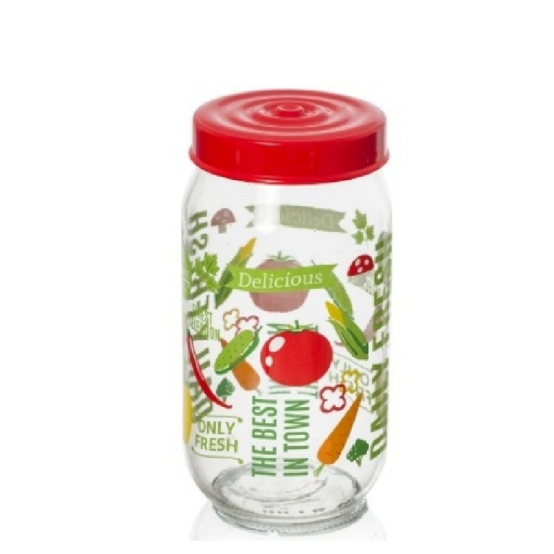 Es eignet sich zur Aufbewahrung von Gewürzen, Kaffee, Zucker, Mehl, Reis und anderen trockenen Lebensmitteln. Das farbenfrohe Gemüsedekor sorgt für Gemütlichkeit und eine angenehme Atmosphäre, und das Glas lässt sich problemlos mit anderen Größen derselben Serie kombinieren, um einen harmonischen und aufgeräumten Küchenstil zu erzielen.