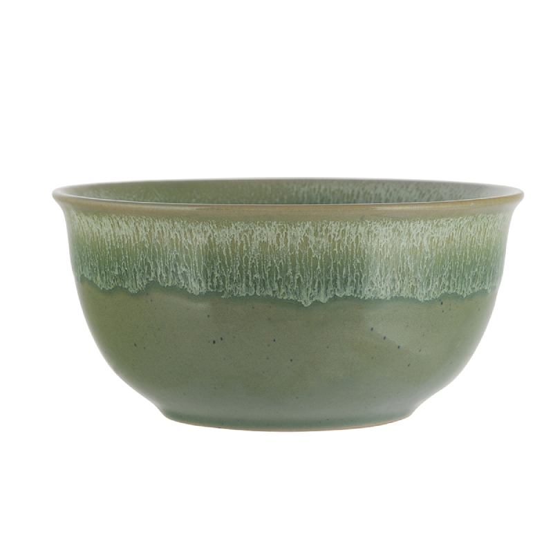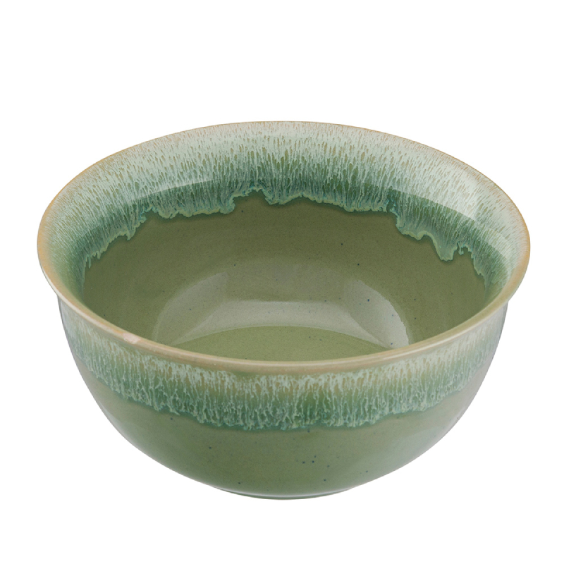 Die aus langlebiger, hochwertiger Keramik gefertigte Schüssel beeindruckt mit einer Textur, die an Wasserwellen erinnert, und ihrer einzigartigen, von Naturlandschaften inspirierten Farbgebung. Jedes Gefäß dieser Serie hat dank der reaktiven Glasur ein individuelles Aussehen und macht jedes Stück zu einem Unikat.