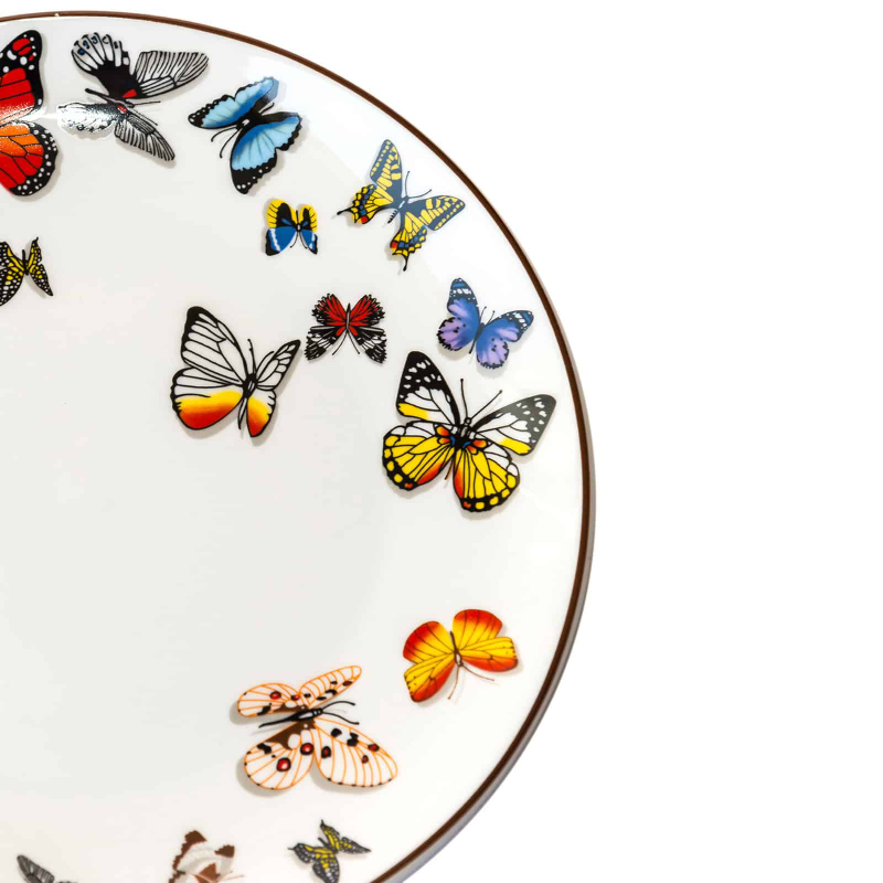 Der Schmetterlingsteller aus Porzellan ist eine stilvolle und frische Ergänzung für jeden Tisch. Aus hochwertigem Porzellan gefertigt, besticht es durch sein edles Dekor – bunte Schmetterlinge, die jeder Mahlzeit Leichtigkeit und Frühlingsstimmung verleihen.