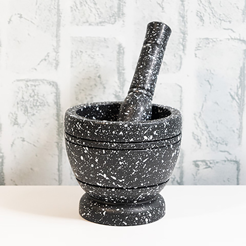 Der Kunststoffmörser in Marmoroptik ist ein kompaktes und praktisches Küchenzubehör, mit dem Sie Ihre Gewürze auf aromatischste Weise zubereiten können. Mit einem Durchmesser von 6,5 cm und einer Höhe von 11 cm ist er kompakt genug, um keinen Platz wegzunehmen, aber auch effektiv genug für den täglichen Gebrauch.
