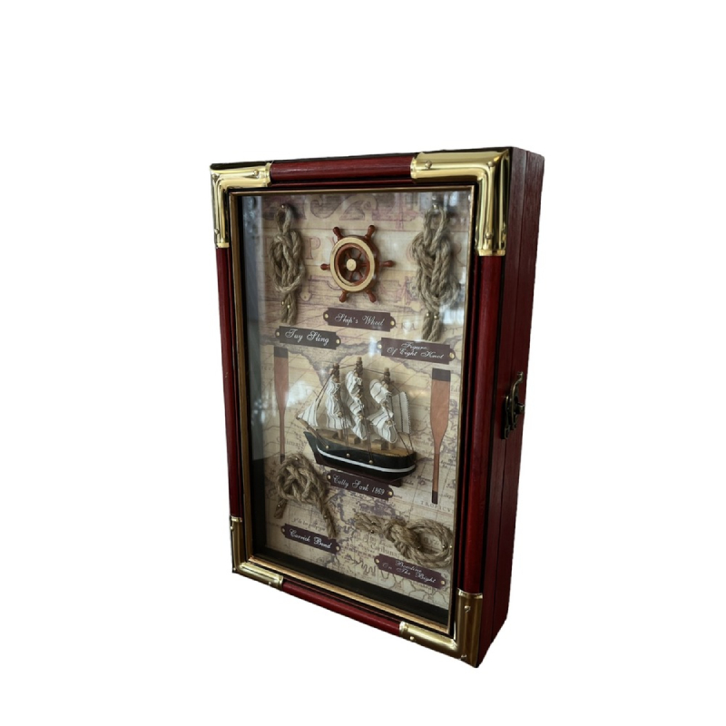 Verleihen Sie Ihrem Zuhause mit diesem dekorativen Schlüsseltresor aus Holz, inspiriert vom maritimen Stil, einen Hauch von Gemütlichkeit und Eleganz. Das Design wird durch dezente maritime Akzente ergänzt, die eine ruhige und angenehme Atmosphäre schaffen und das praktische Accessoire in ein wunderschönes Einrichtungselement verwandeln.