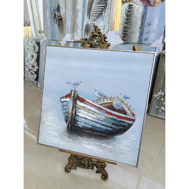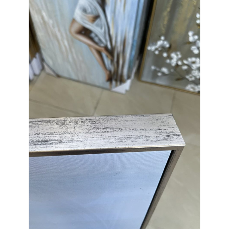 Das Gemälde ist auf Leinwand gefertigt und mit einem eleganten silbernen Rahmen versehen, der seinen modernen Charakter unterstreicht und es mit verschiedenen Einrichtungsstilen kombinierbar macht. Es eignet sich für Wohnzimmer, Schlafzimmer, Büro oder Hotelzimmer und verleiht jedem Raum eine entspannte und elegante Atmosphäre.