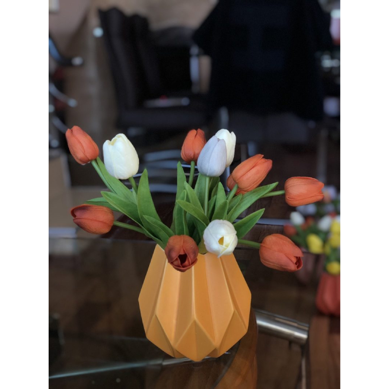 Eine gelbe Vase ist ein stilvolles und elegantes Dekorationselement, das jedem Interieur Eleganz und Gemütlichkeit verleiht. Ihr satter Gelbton vermittelt ein Gefühl von natürlicher Frische und Ausgewogenheit und lässt sich mühelos mit verschiedenen Farbschemata und Möbeln kombinieren.