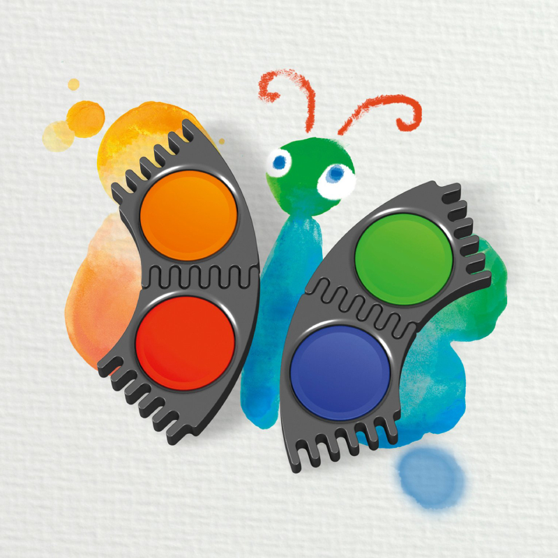 Das Set bietet hohe Deckkraft und Farbintensität. Die Farben lassen sich mischen, um verschiedene Farbtöne zu erzeugen. Die Basis enthält deckende weiße Farbe, mit der sich sowohl leichte Schatten als auch kräftigere Töne gestalten lassen. Der spezielle transparente Deckel dient gleichzeitig als Palette und ermöglicht das einfache Mischen der Farben sowie den Vergleich des Ergebnisses mit dem bereits aufgetragenen Farbauftrag. Alle Elemente sind leicht zu reinigen, wodurch sich das Set ideal für den Einsatz zu Hause und in der Schule eignet.