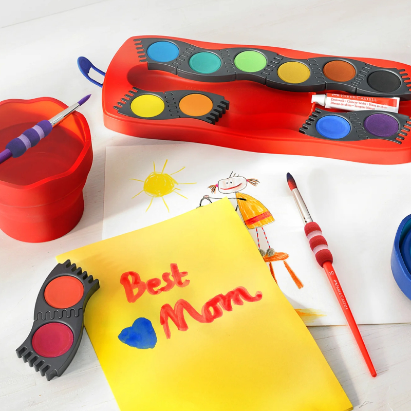 Die Faber-Castell Connector Aquarellfarben im 12er-Set (rote Basis) bestechen durch ihr innovatives Design, das Malen zum Spiel macht. Jede Farbe befindet sich in einer separaten, herausnehmbaren Box, die einzeln oder miteinander kombiniert werden kann, um verschiedene Farbkombinationen und Formen zu gestalten – wie ein echter Aquarell-Baukasten. Dadurch eignet sich das Produkt ideal für Kinder, die auf spielerische Weise Farben und deren Mischung kennenlernen, und erleichtert zudem das Organisieren und Transportieren der Farben.