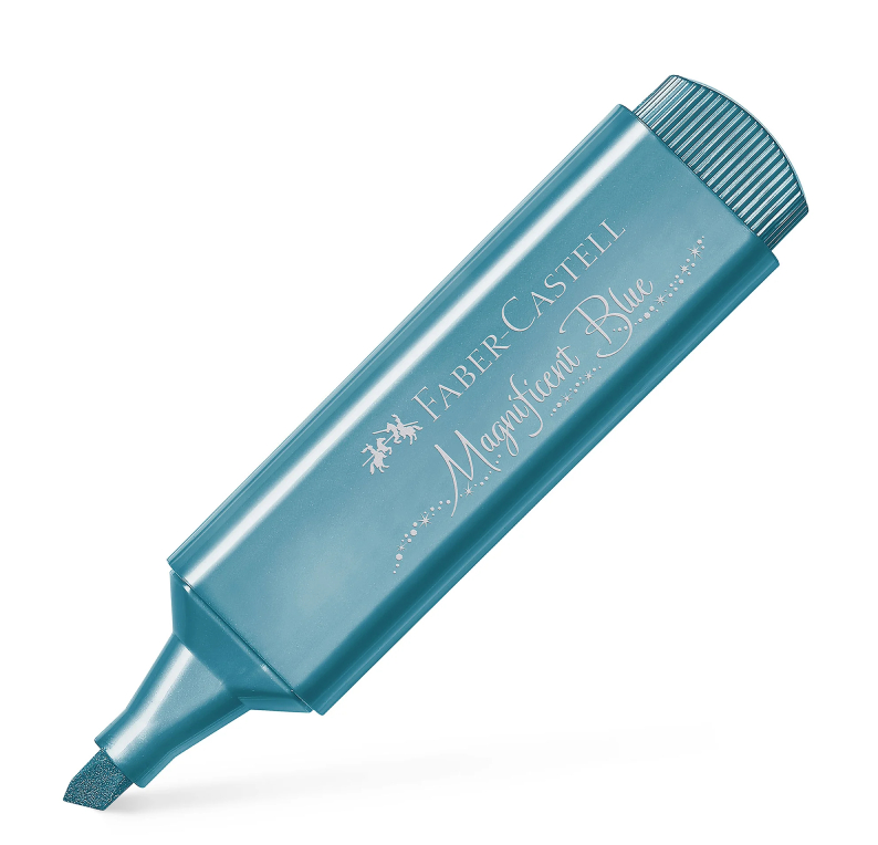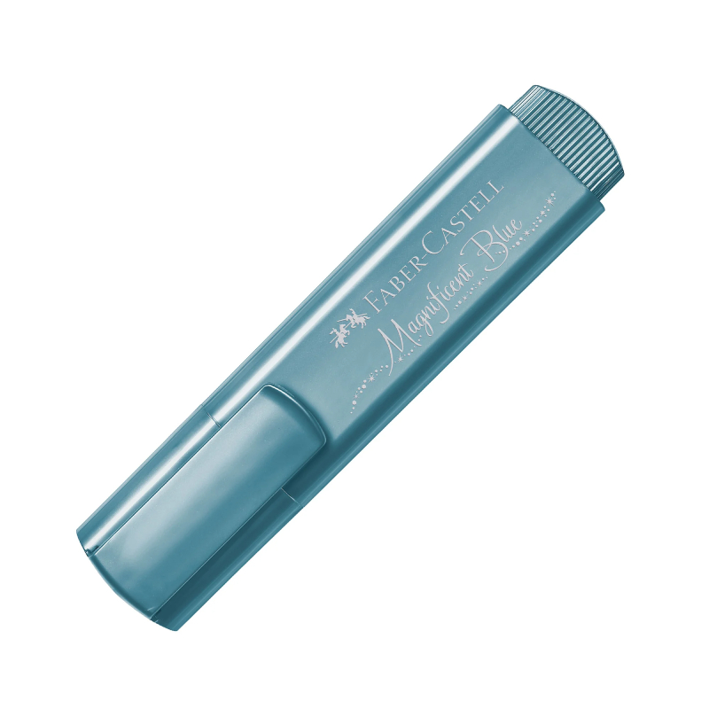 Der Faber-Castell 1546 Metallic-Textmarker in Blau verleiht markiertem Text Glanz und einen dezenten Glitzereffekt und eignet sich daher ideal für kreative Projekte, Notizen und Akzente in Dokumenten. Die Tinte auf Wasserbasis sorgt für sauberes Markieren, ohne das Papier zu durchdringen.