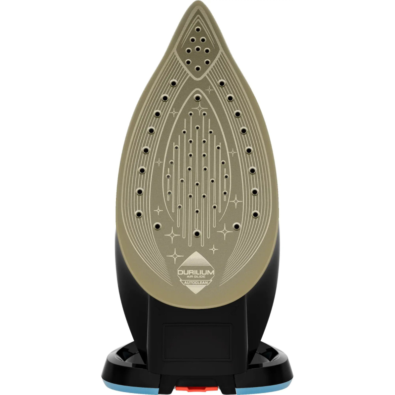 - Durilium AirGlide Autoclean-Bügelsohle: Sorgt für optimales Gleiten und gleichmäßige Dampfverteilung. Die Autoclean-Beschichtung hält die Bügelsohle auch bei längerem Gebrauch fleckenfrei.