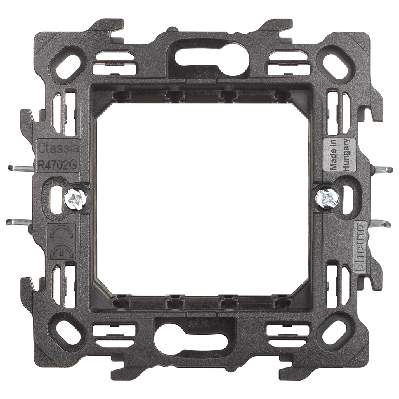 Der zweimodulige Classia Bticino R4702G-Montagerahmen von LEGRAND ist für die sichere und stabile Montage von Schaltern und Steckdosen konzipiert. Der Rahmen besteht aus langlebigem Thermoplast und ist mit Montagefüßen mit Halterungen ausgestattet, sodass er sich besonders für die schraubenlose Installation eignet.