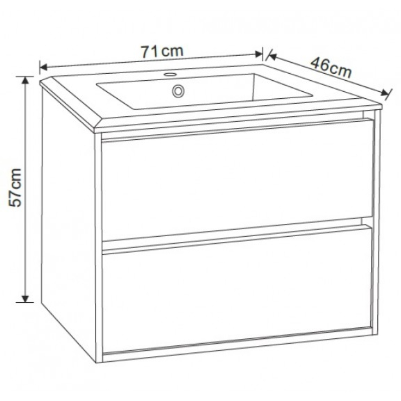 - Schrankmaße (B x H x T): 71 x 57 x 46 cm