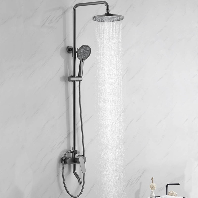 Das Duschsystem Torino 6328BLACK von INTER CERAMIC ist eine elegante und moderne Lösung für jedes Badezimmer. Es vereint stilvolles Design in Gun Grey (Grau-Schwarz) und Funktionalität passend zum modernen Lebensstil. Dank der verstellbaren Rohraufhängung, dem großen Duschkopf und der 5-Funktionen-Handbrause bietet dieses System umfassenden Komfort und ein individuelles Badeerlebnis.