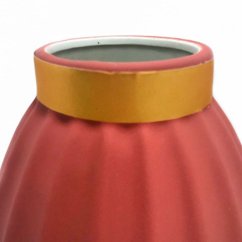Eine stilvolle Dekovase in modernem Fliesenton, die durch ihre klare Silhouette und elegante Optik besticht. Gefertigt aus hochwertiger Keramik mit glatter Oberfläche, vermittelt sie ein Gefühl von Feinheit und Stabilität. Die goldenen Akzente ergänzen das Design und verleihen ihm einen edlen Glanz, wodurch sie sowohl zu klassischen als auch zu modernen Interieurs passt.