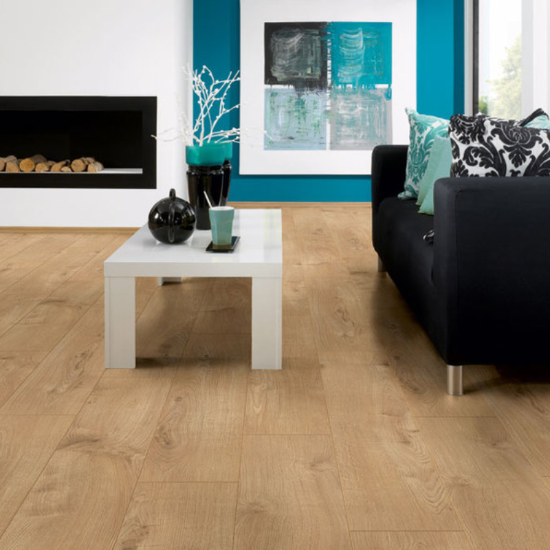 Das Laminatparkett Sherwood Oak aus der Modera Classic Kollektion vereint Eleganz, Funktionalität und Haltbarkeit in einer kompletten Bodenlösung. Die Kombination aus der natürlichen Optik von Eichenholz und warmen Beige-Braun-Tönen bringt Gemütlichkeit und Harmonie in jeden Raum. Die realistische Struktur und die vierseitige Fase erzeugen das Gefühl eines natürlichen Massivbodens und die robuste Oberfläche sorgt auch bei intensiverer Nutzung für Haltbarkeit.