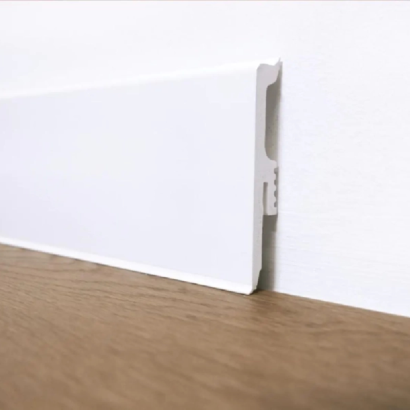 Elegante und praktische Sockelleiste VIGO 80 White von Arbiton, hergestellt mit moderner Polymertechnologie. Die Sockelleiste in Weiß vereint Haltbarkeit und stilvolles Aussehen und passt zu jedem Interieur – von klassisch bis modern. Dank seines innovativen Designs bietet es Platz zum Verstecken von Kabeln und eine perfekte Fugenabdeckung.
