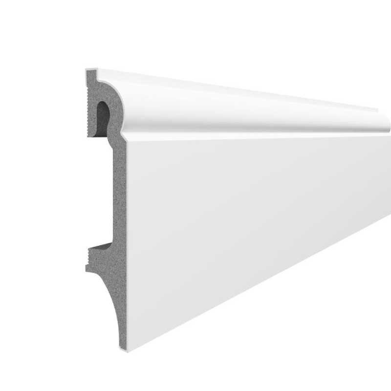 Espumo ist eine innovative Sockelleiste, die mit der Kerracore-Technologie hergestellt wird und eine hohe Stoß- und Feuchtigkeitsbeständigkeit garantiert. Sie eignet sich ideal für die Veredelung von Keramik-, Vinyl- und Laminatböden. Die Sockelleiste kann lackiert werden und passt sich so perfekt jedem Einrichtungsstil an. Für eine professionelle und ästhetische Endbearbeitung ist spezielles Zubehör erhältlich.