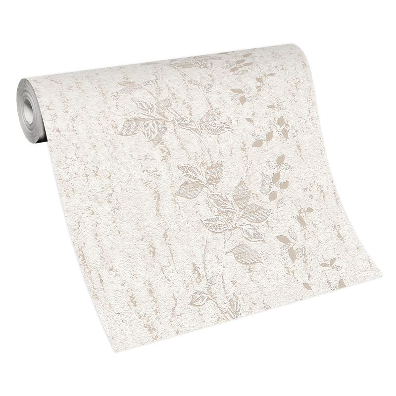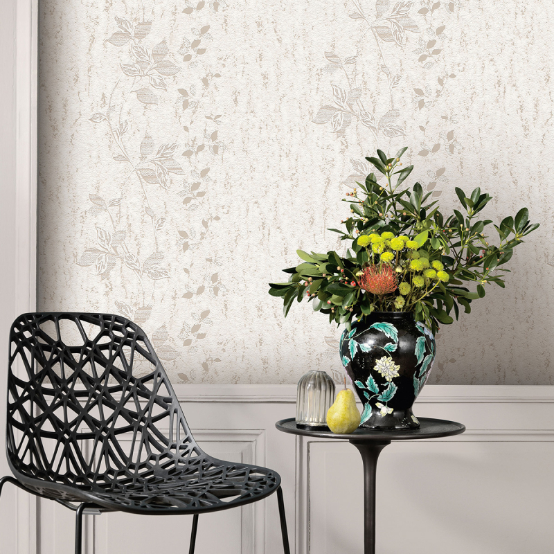 Elegante Tapete mit floralem Motiv in vertikalem Design, das die Zartheit von Blumen mit der ausdrucksstarken Optik von großflächigem Putz verbindet. Der Hintergrund mit Strukturstruktur erzeugt ein Gefühl von Tiefe und Stil, und die Kombination aus Beige- und Cremetönen verleiht dem Interieur Wärme und Harmonie. Geeignet für Wohn- und Schlafzimmer, wo sie Licht und Eleganz bringt.