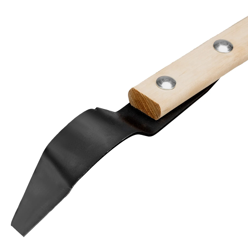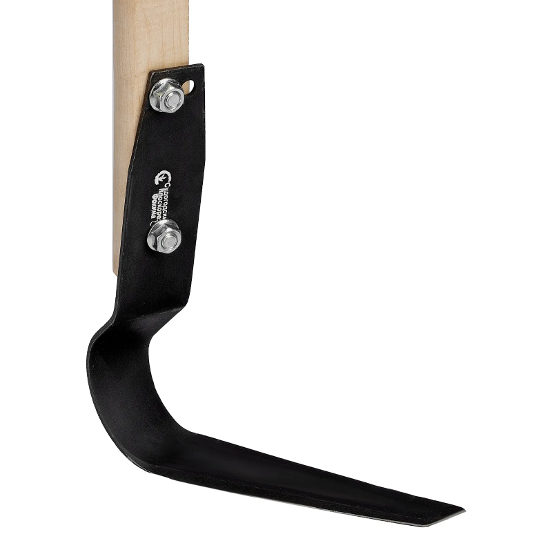 Das Arbeitsteil ist bügelförmig und verfügt über drei scharfe, gehärtete Schneidkanten, die eine problemlose Bearbeitung großer Flächen und die Bekämpfung von hartnäckigem Unkraut und schwerem Boden ermöglichen. Darüber hinaus ist es mit Korrosionsschutzöl beschichtet, was die Haltbarkeit erhöht und das Werkzeug vor Rost schützt. Der Neigungswinkel des Kopfes kann an die Körpergröße des Benutzers angepasst werden, um Komfort und Effizienz bei der Arbeit zu gewährleisten.