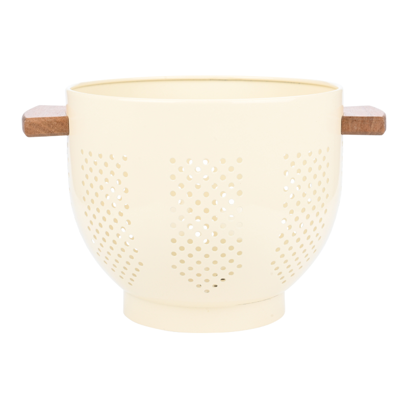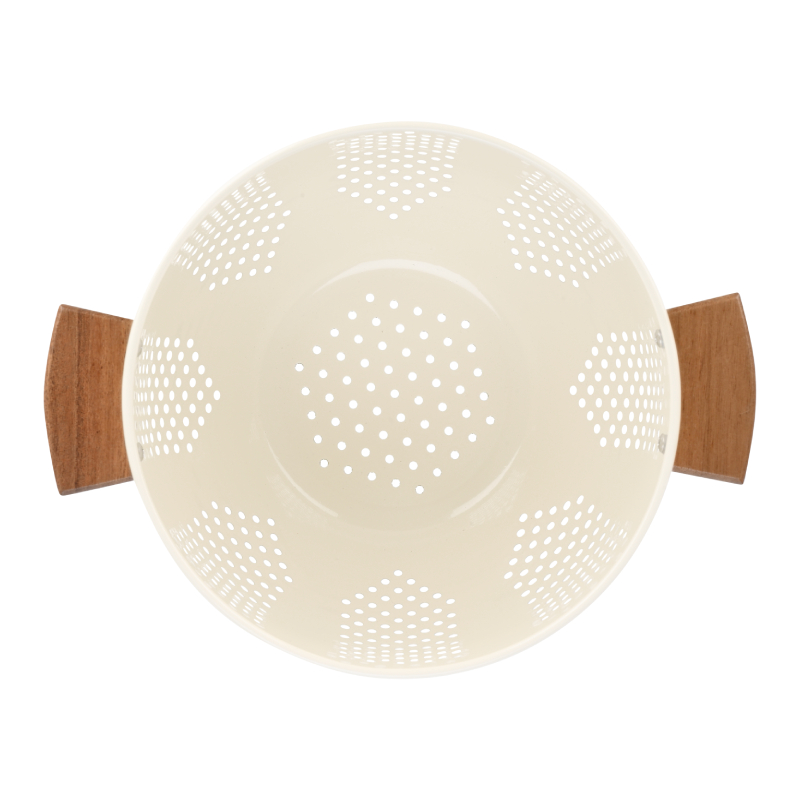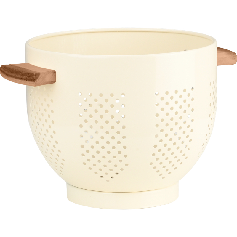 Ein praktisches und robustes Küchenwerkzeug zum einfachen Abgießen von Nudeln und anderen Lebensmitteln. Vereint Funktionalität mit natürlichem Design.