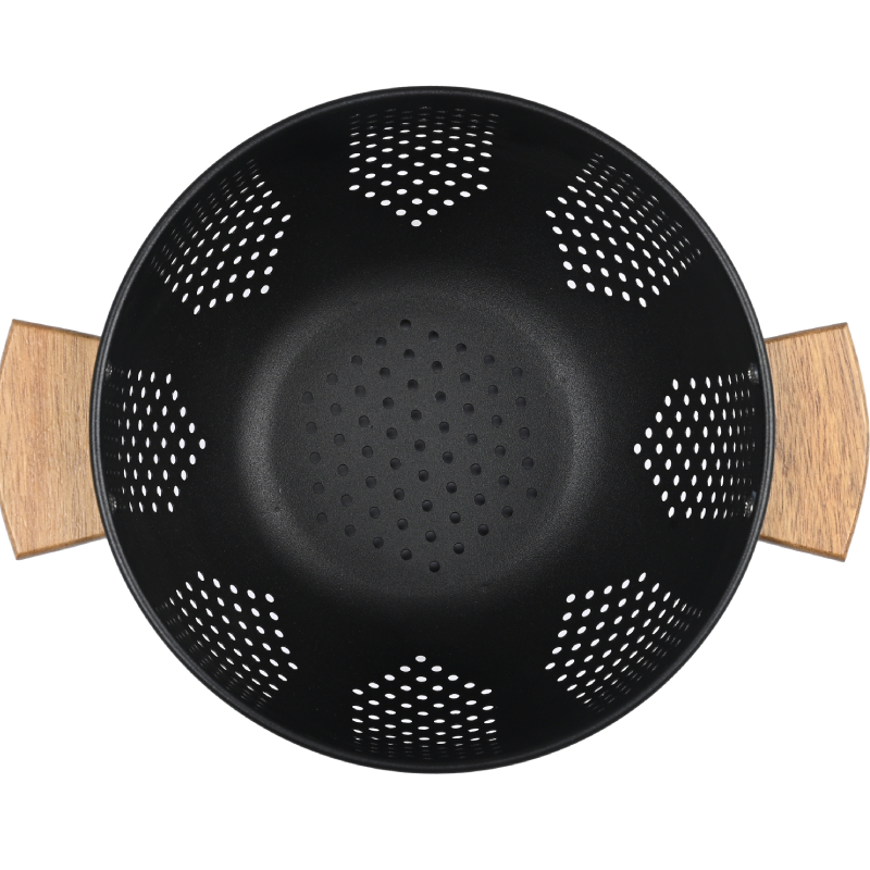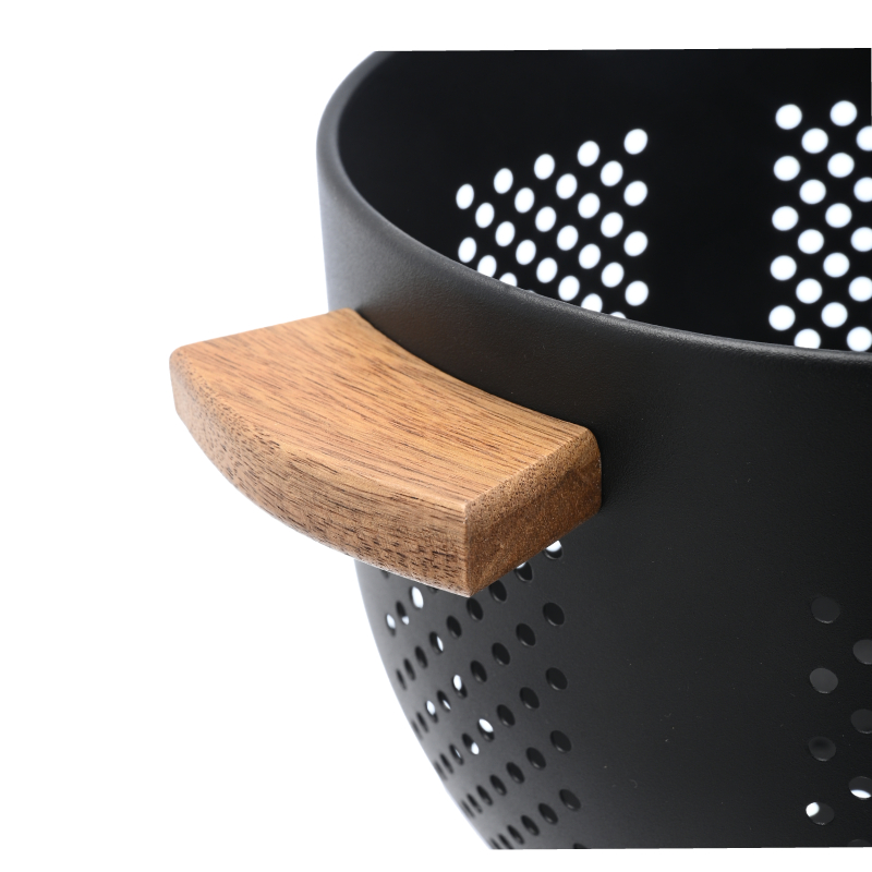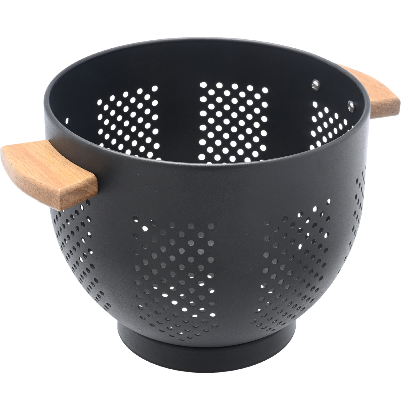 Ein praktisches und robustes Küchenwerkzeug zum einfachen Abgießen von Nudeln und anderen Lebensmitteln. Vereint Funktionalität mit natürlichem Design.
