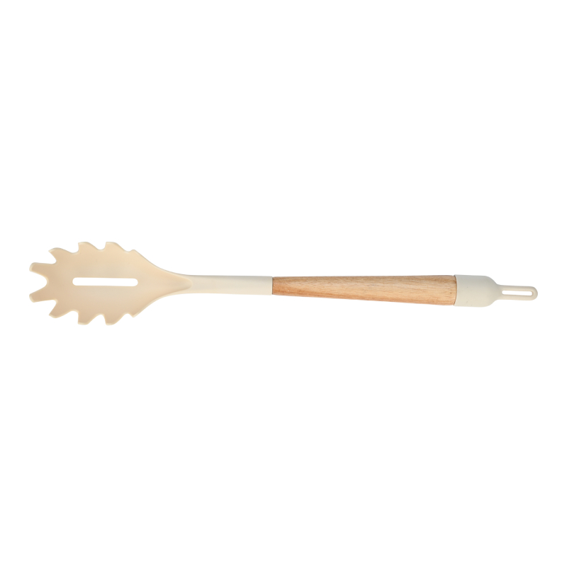 Der Allure Pastalöffel wurde speziell für das bequeme und präzise Servieren von Spaghetti und anderen Nudelsorten entwickelt. Mit seinem komfortablen Griff aus hitzebeständigem Material (PBT) in elegantem Elfenbein ist er sowohl funktional als auch stilvoll.