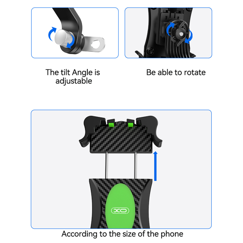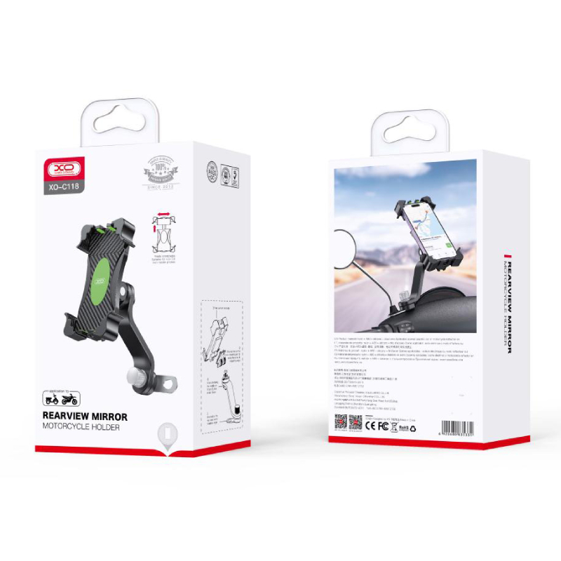 XO C118 ist eine universelle Telefonhalterung für Motorräder, Fahrräder und Motorroller, die eine sichere und stabile Befestigung des Geräts während der Fahrt ermöglicht. Die Konstruktion aus ABS, Silikon und Stahldraht bietet Haltbarkeit und Zuverlässigkeit und schützt das Telefon gleichzeitig vor Kratzern. Der Griff an den vier Ecken sorgt dafür, dass das Gerät auch auf unebenen Straßen oder bei hoher Geschwindigkeit an Ort und Stelle bleibt.