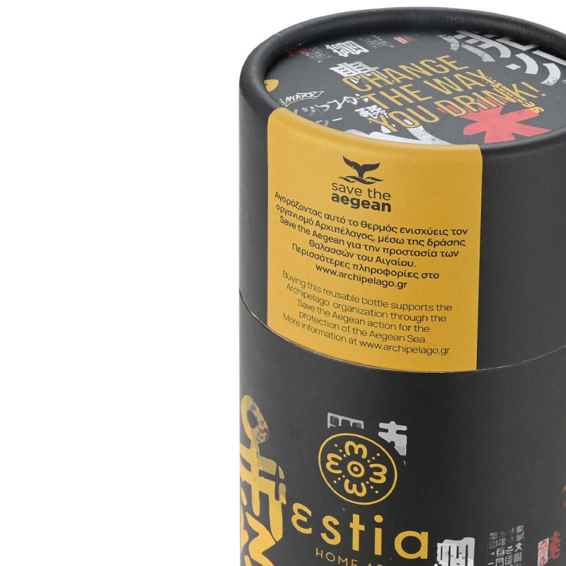 Neben ihrer Funktionalität vermittelt die Thermosflasche auch ein ökologisches Statement. Die Verpackung besteht aus 100 % recyceltem Karton, und das Produkt ist BPA-frei und somit gesundheitlich unbedenklich. Ein Teil des Erlöses geht an die Organisation Archipelagos, die sich für den Schutz der Ägäis einsetzt. So erfrischt Sie jeder Schluck nicht nur, sondern unterstützt auch einen nachhaltigen und verantwortungsvollen Umgang mit der Natur.