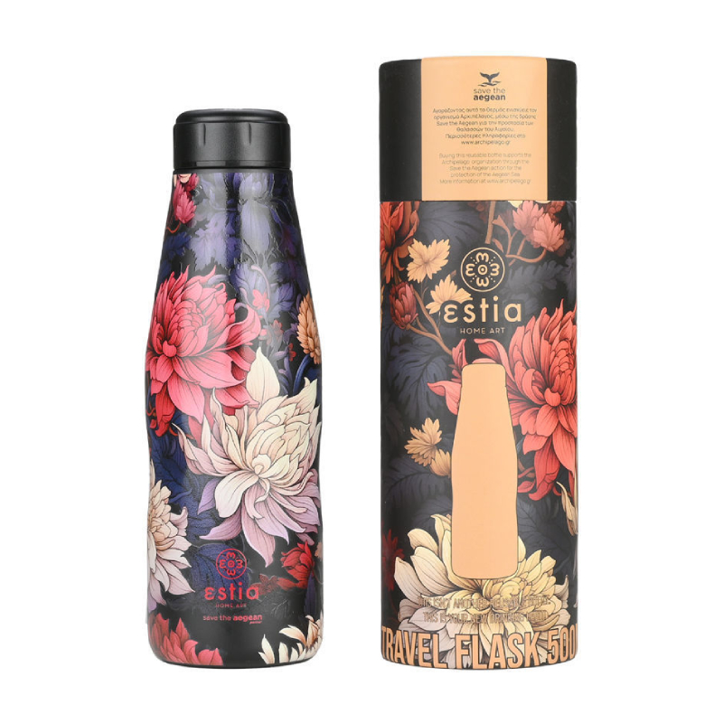 Die ESTIA „Save the Aegean“-Reisethermosflasche wurde für Menschen mit einem aktiven Lebensstil entwickelt, die Wert auf Komfort und stilvolles Design legen. Dank ihrer kompakten Abmessungen und ergonomischen Rundungen liegt die Flasche gut und bequem in der Hand und ist gleichzeitig ein eleganter Akzent für jede Reise-, Sport- oder Büroausrüstung. Sie besteht innen und außen aus hochwertigem 18/8-Edelstahl, wodurch sichergestellt wird, dass Getränke ihren natürlichen Geschmack und ihr natürliches Aroma behalten, ohne dass unerwünschte Gerüche entstehen oder mit dem Material reagiert wird.