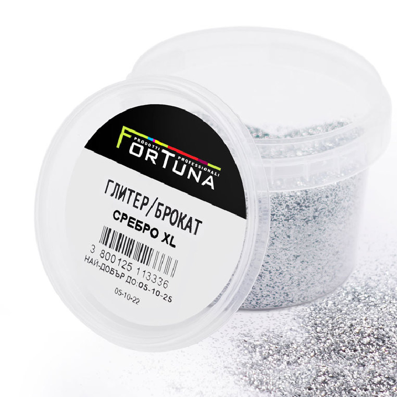FORTUNA Silver XL Brokat ist ein dekorativer Zusatzstoff zum Mischen mit Farben und Putzen auf Wasserbasis. Silberpartikel verleihen Wänden und Oberflächen einen eleganten Glanz und ein spektakuläres Aussehen und schaffen so in jedem Raum eine moderne und stilvolle Atmosphäre.